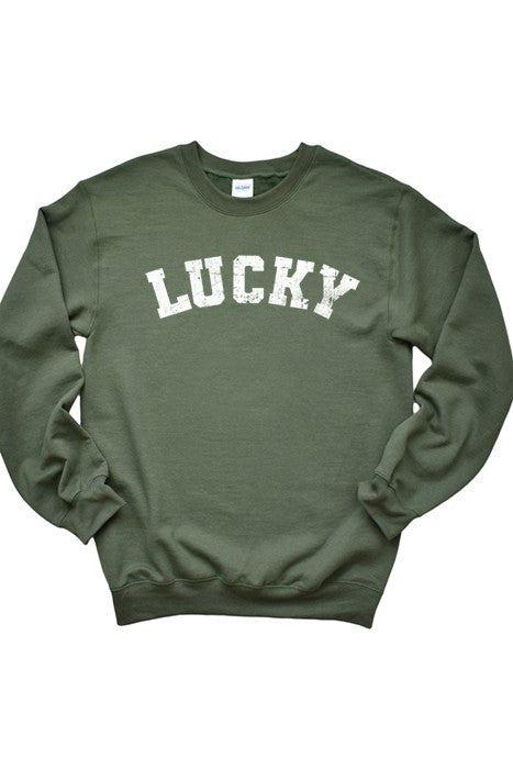 Super soft and cozy graphic sweatshirt. Made of a preshrunk cotton/poly blend. Gildan brand Sweatshirt. Cute St Patrick's day design to show your Irish spirit and show how lucky you are when wearing green.