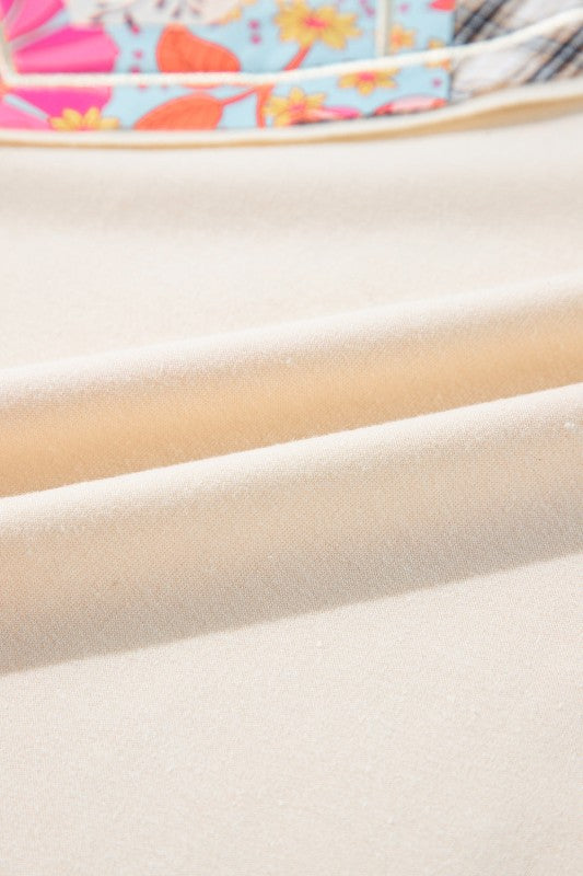 Plaid Floral Peace Heart Wide Long Sleeve Top