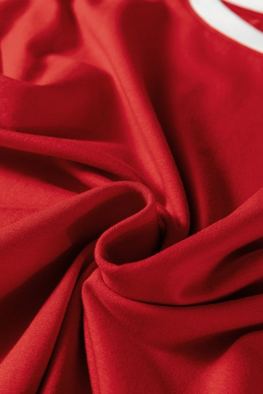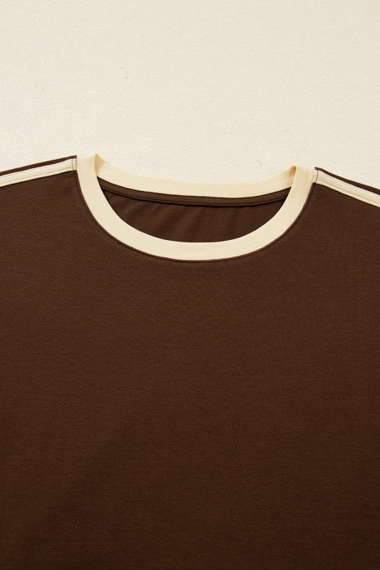 This playful tee brings a fresh twist to your wardrobe. Its simple yet chic design pairs effortlessly with any outfit, while the contrasting varsity-style accents add a fun, sporty vibe. Made from soft and breathable fabric, it offers just the right amount of stretch for all-day comfort and easy movement. Perfect for adding a pop of color and style to your everyday look! Cotton/Spandex