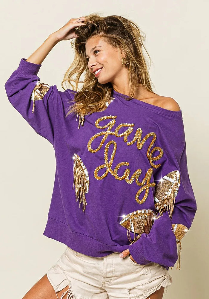 BiBi Sequin Football Patches Game Day Sweatshirt