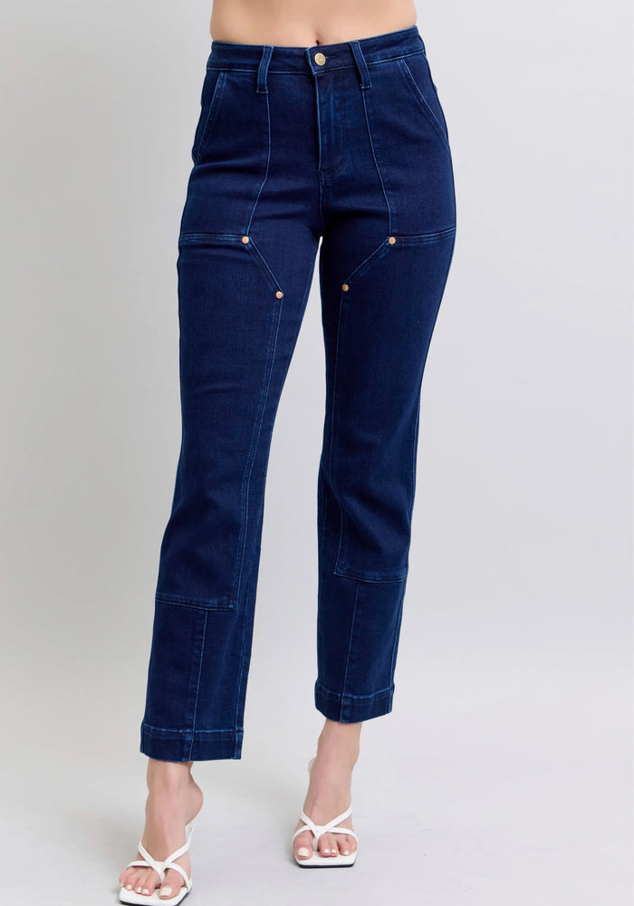 Judy Blue Full Size Hw Work Wear Knee Patch Straight Jeans Plus Size