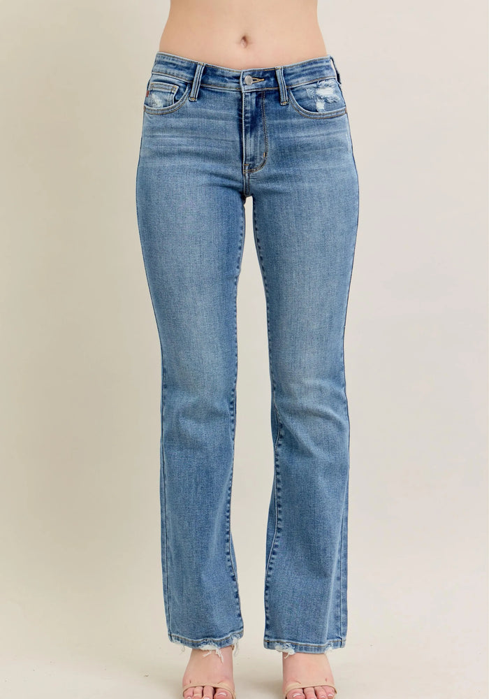 Judy Blue Full Size Mid Rise Wash Destroy Hem Bootcut Jeans Plus Size