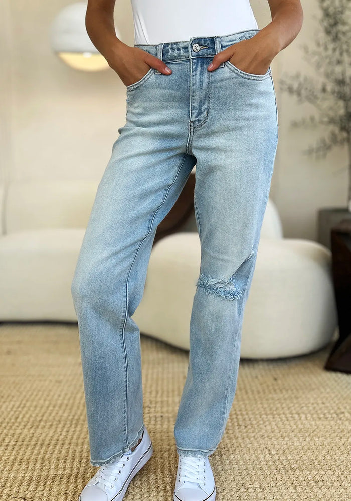 Judy Blue Full Size High Waist Distressed Straight Jeans