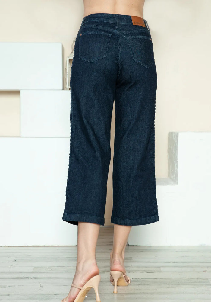 Judy Blue Full Size Side Seam Braid Detail Crop Wide Leg Jeans
