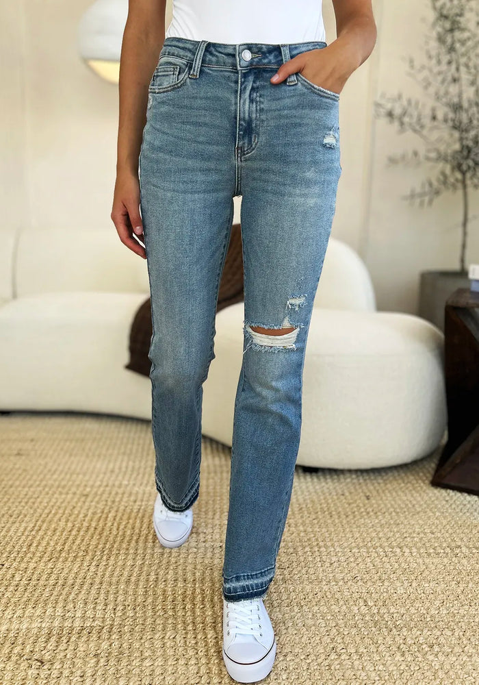 Judy Blue Full Size Mid Rise Destroyed Hem Distressed Jeans