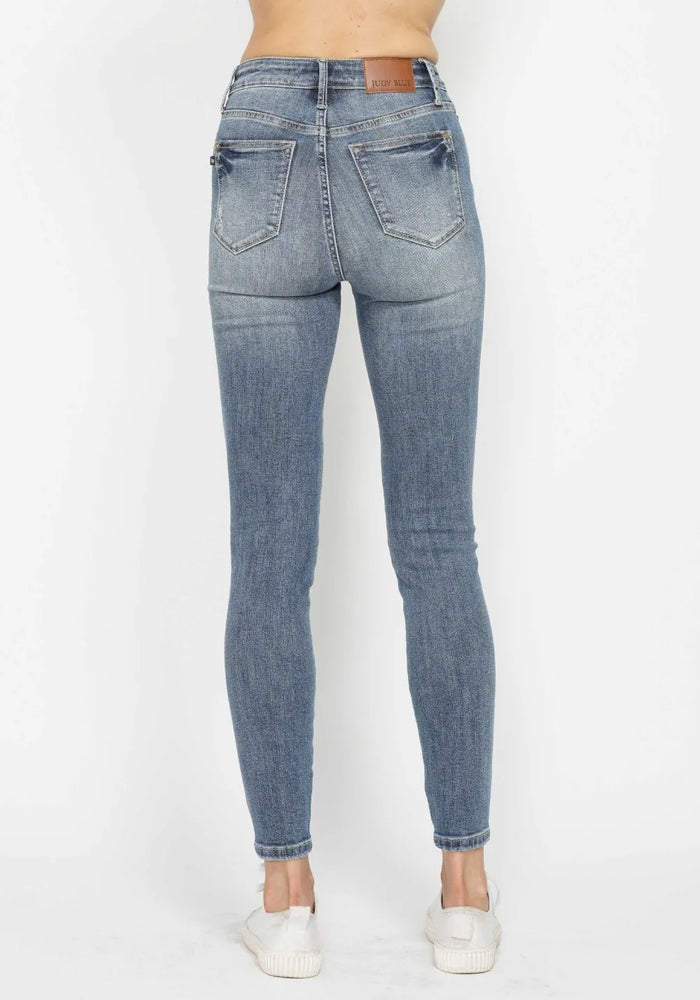 Judy Blue Full Size Tummy Control Vintage Wash Hem Destroy Skinny Jeans