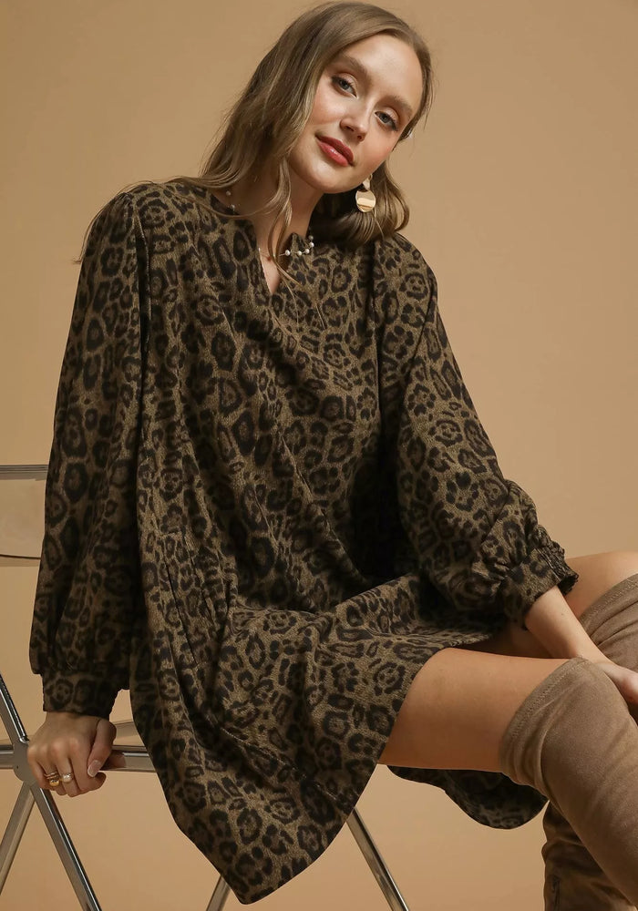Khaki Leopard Pullover and Pants 2pcs Outfit with Bow Embroidery