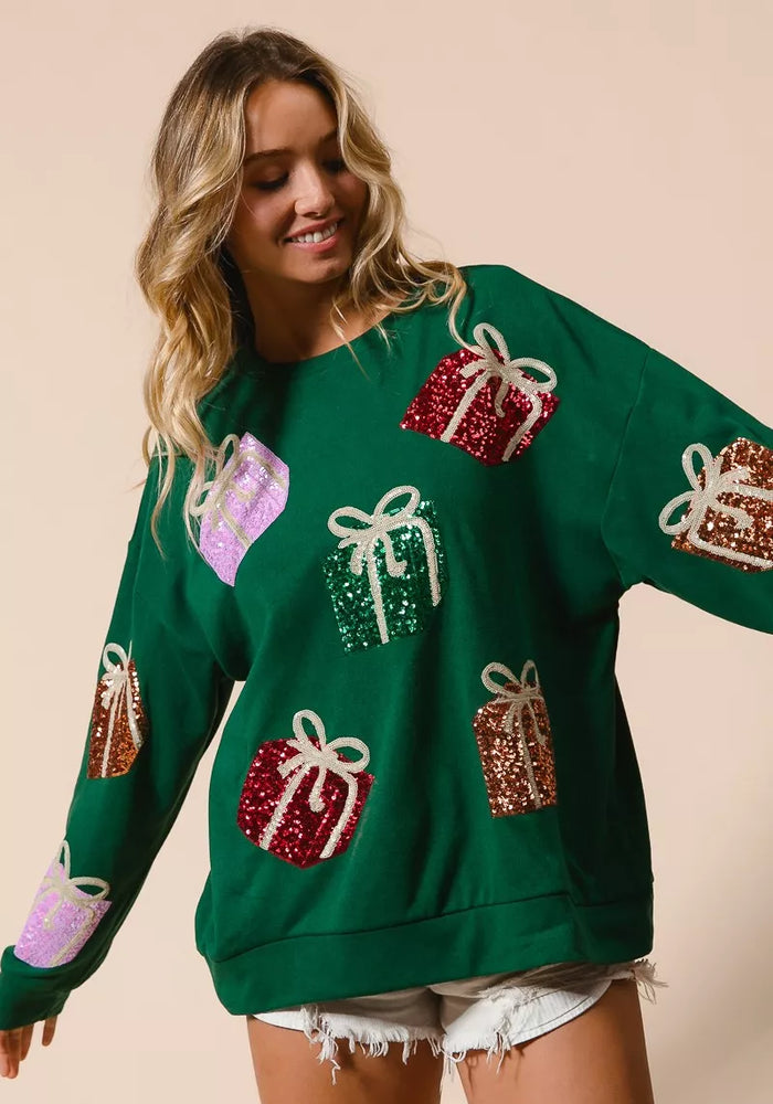 BiBi Sequin Christmas Gift Box Embroideries Pullover
