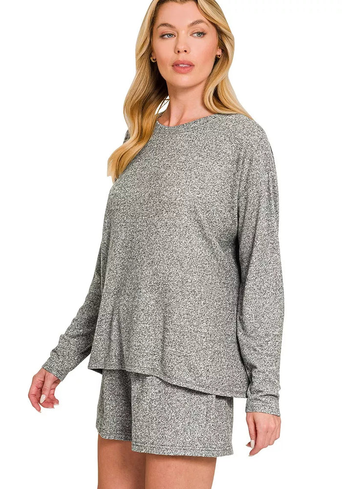 Zenana Soft Melange Long Sleeve Tee and Shorts Set