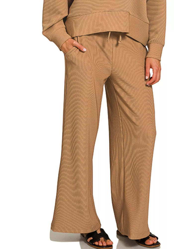 Zenana Ribbed Round Neck Pullover and Drawstring Pants Set