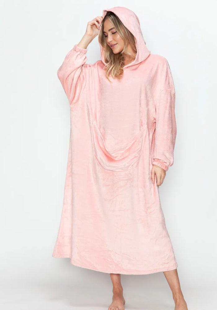 Double Take Full Size Pocketed Hooded Midi Lounge Dress