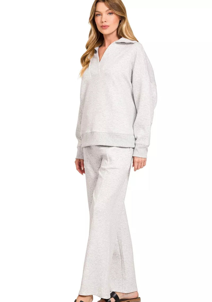 Zenana Scuba Collared Pullover and Pants Set