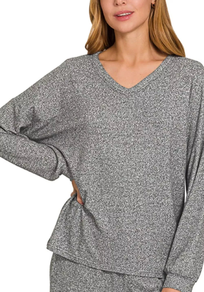 Zenana Soft Melange Long Sleeve Tee & Pants Set
