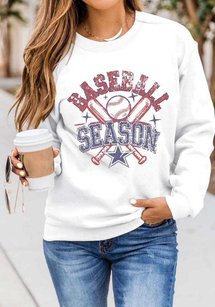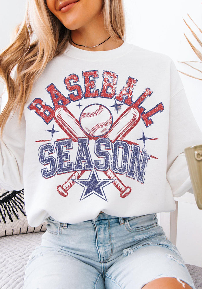 White BASEBALL SEASON Vintage Print Graphic Sweatshirt