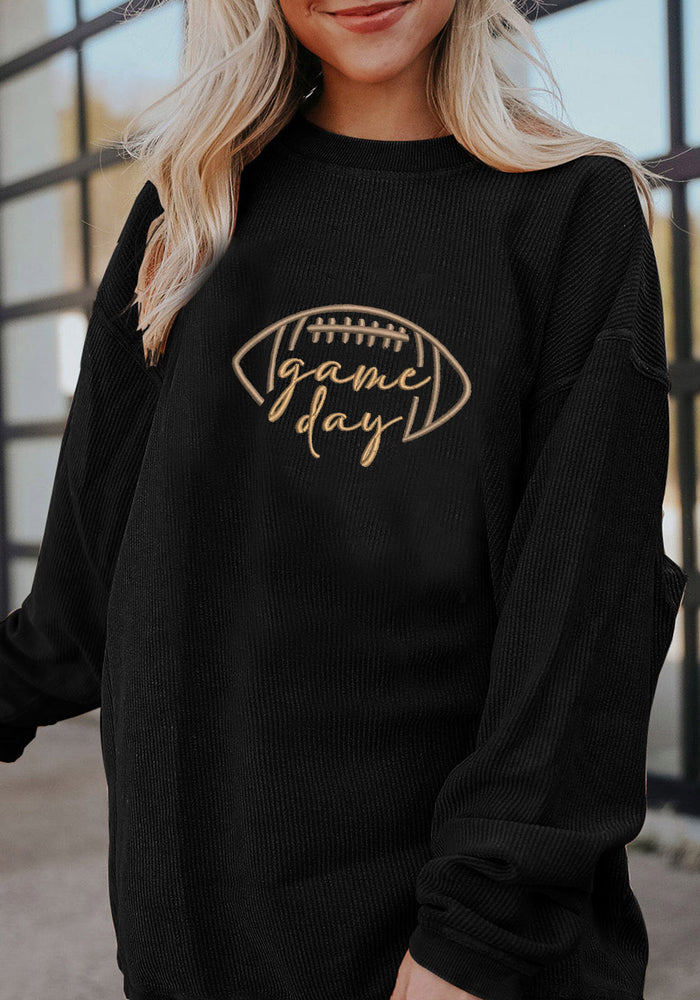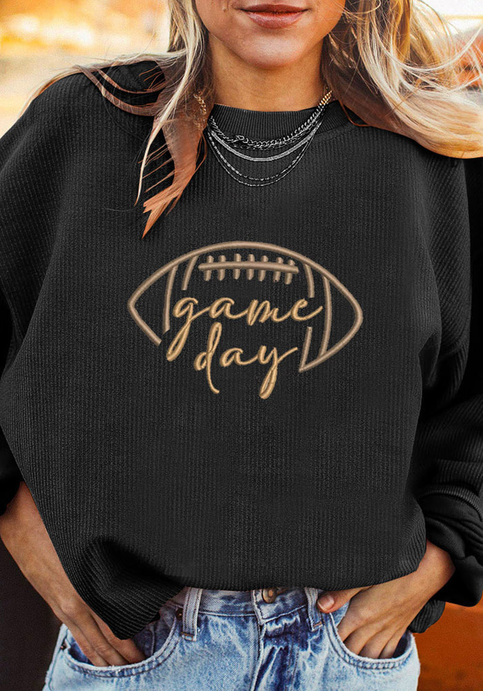 Black Rugby Game Day Embroidered Corduroy Sweatshirt
