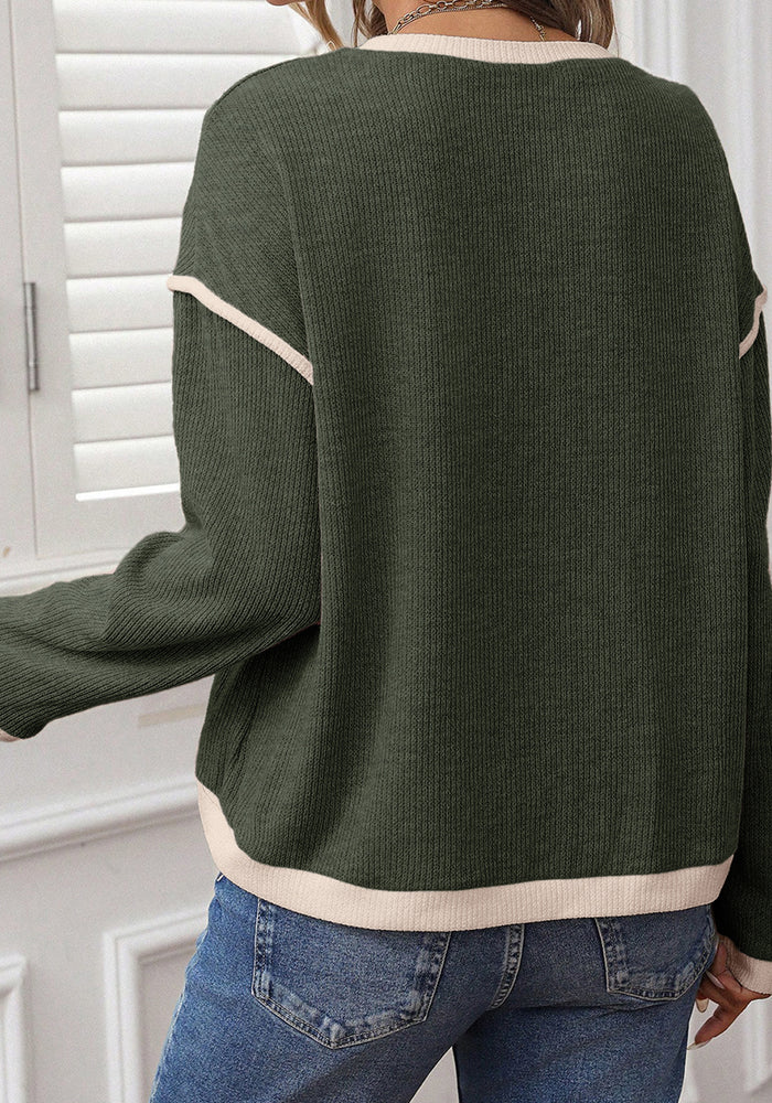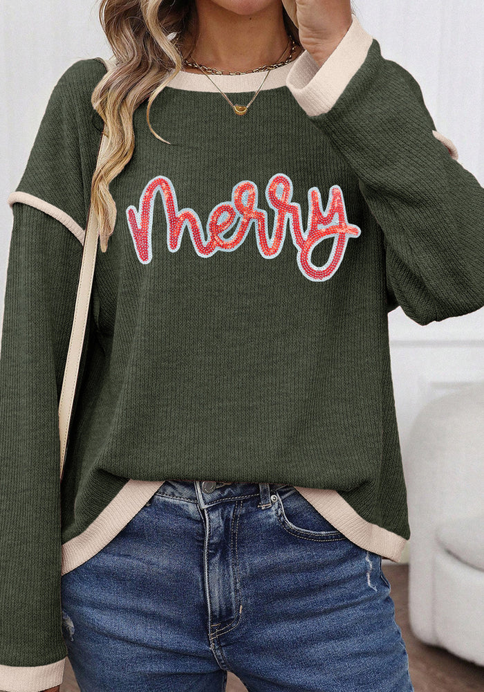 Four Leaf Clover Merry Patched Graphic Contrast Trim Christmas Knitted Long Sleeve Top
