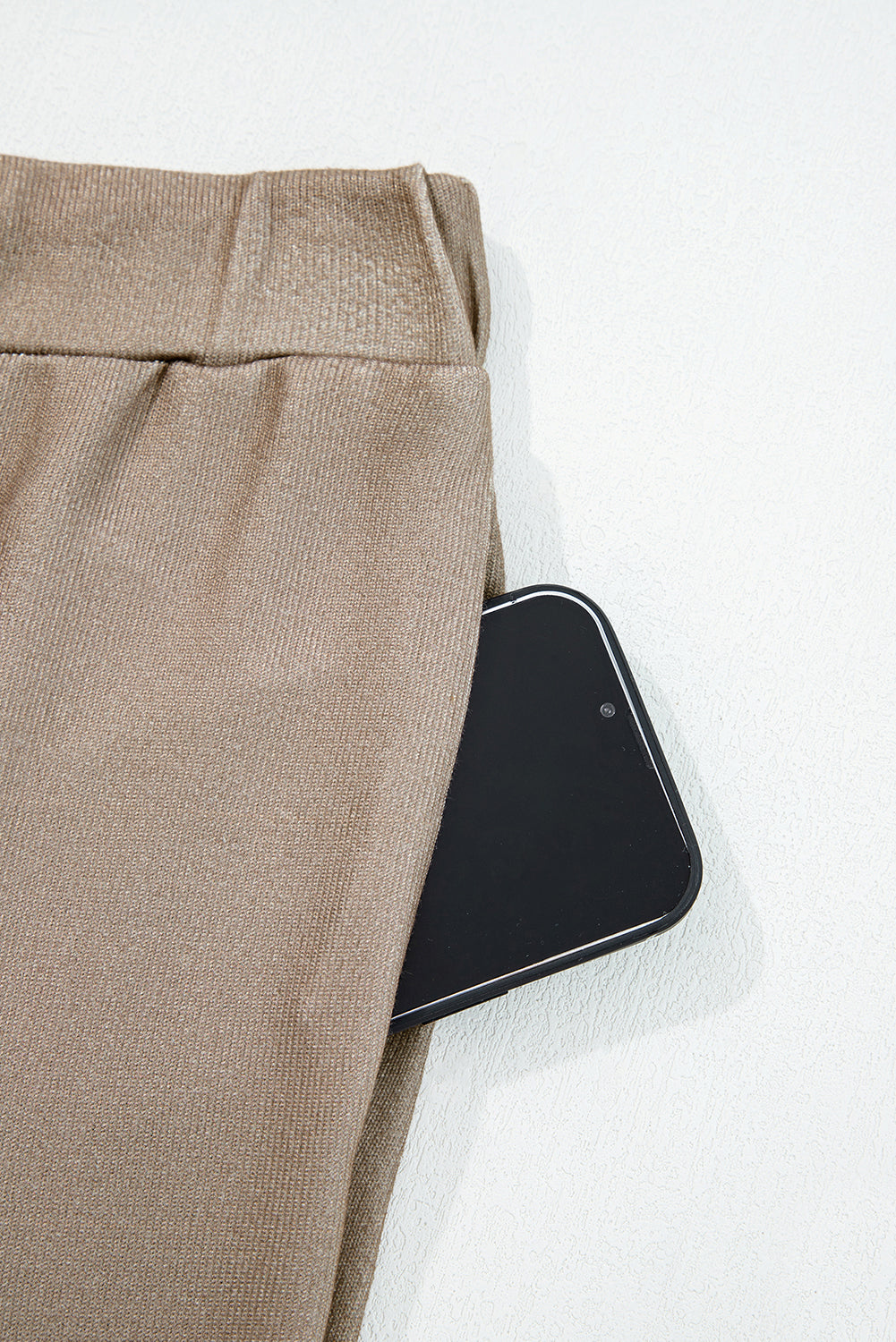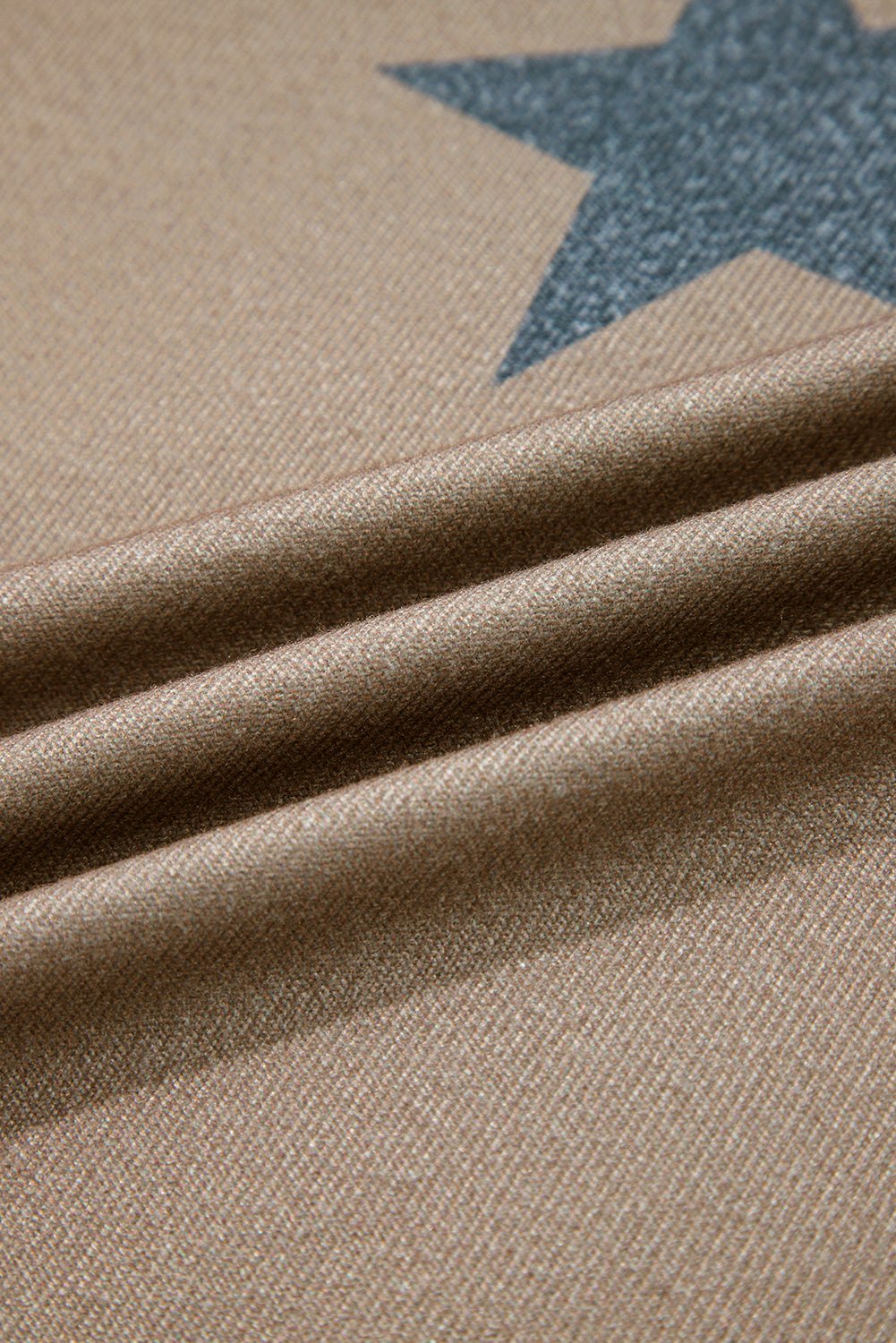 • Khaki Retro Star Print Loose Long Sleeve Drawstring Wide Leg 2pcs Lounge Set