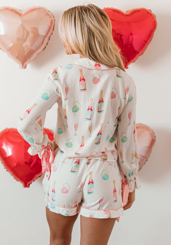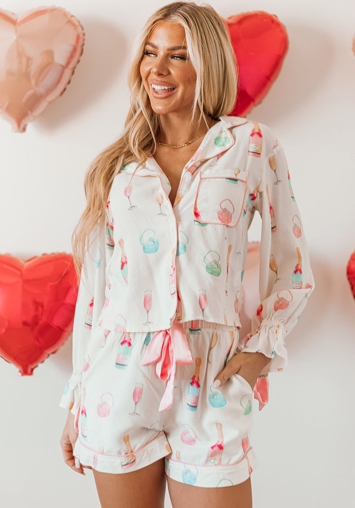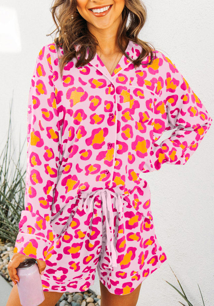 Pink Leopard Print Long Sleeve Shirt and Shorts Pajama Set