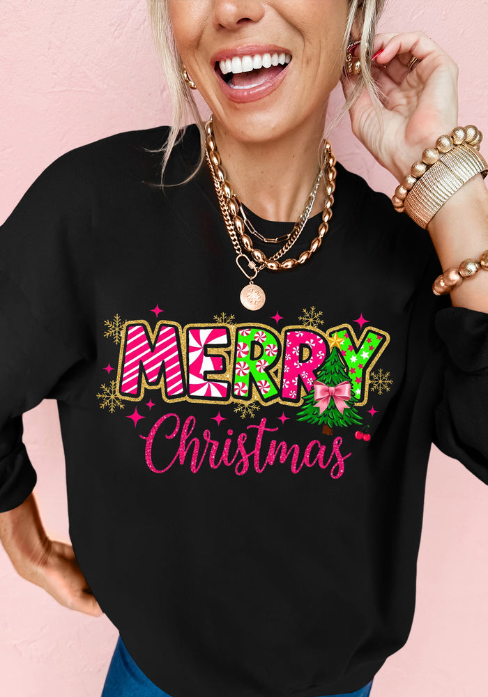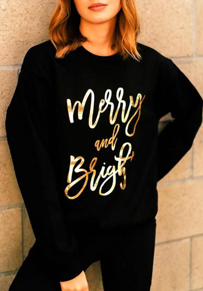 Black Merry & Bright Letter Print Pullover Sweatshirt