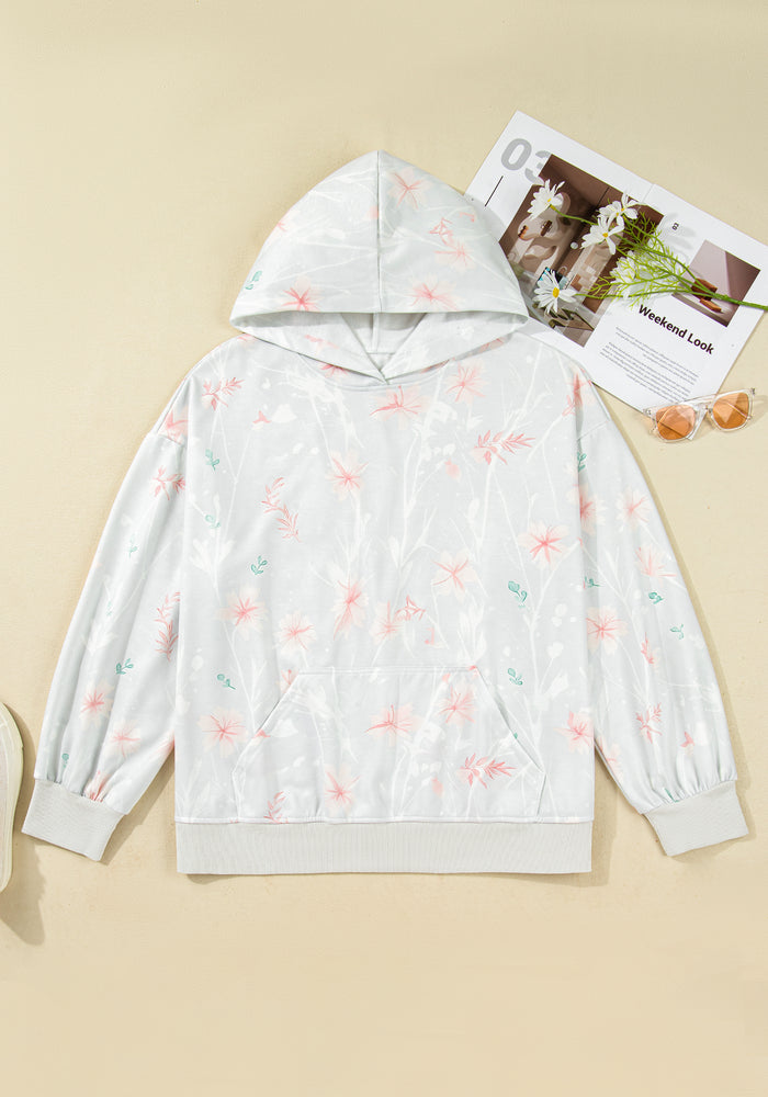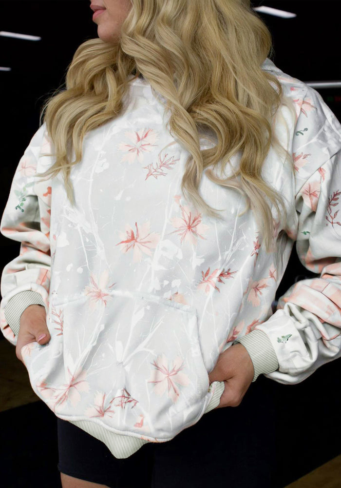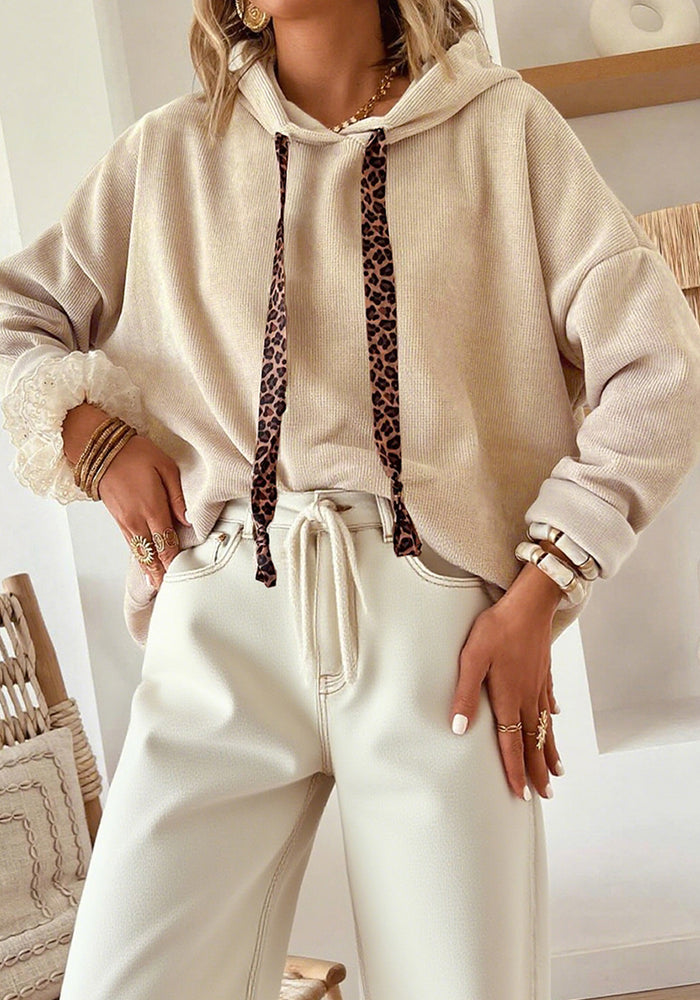 Parchment Thermal Textured Leopard Drawstring Baggy Hoodie