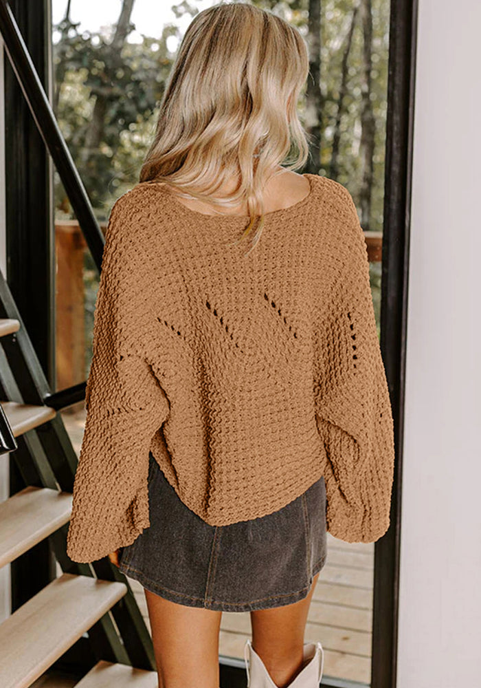 Camel Hollowed Detail Wide Sleeve Loose Pullover Sweater