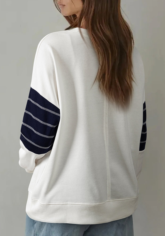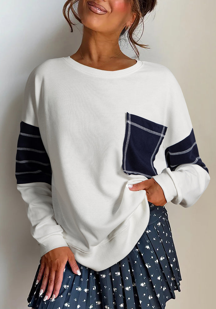White Exposed Seam Detail Color Block Patch Pocket Drop Shoulder Sweatshirt