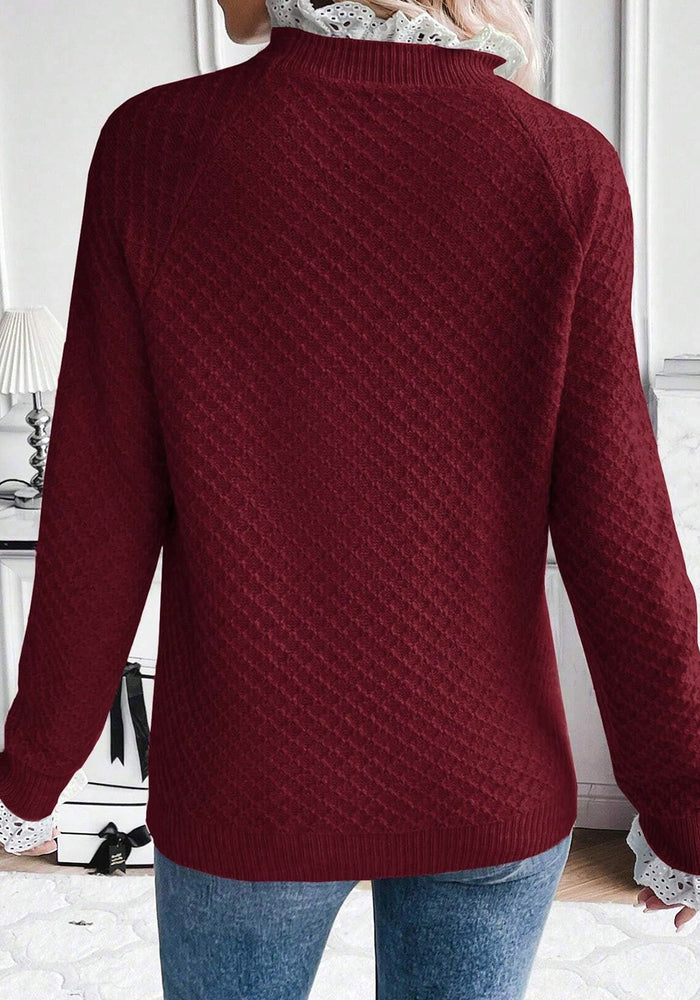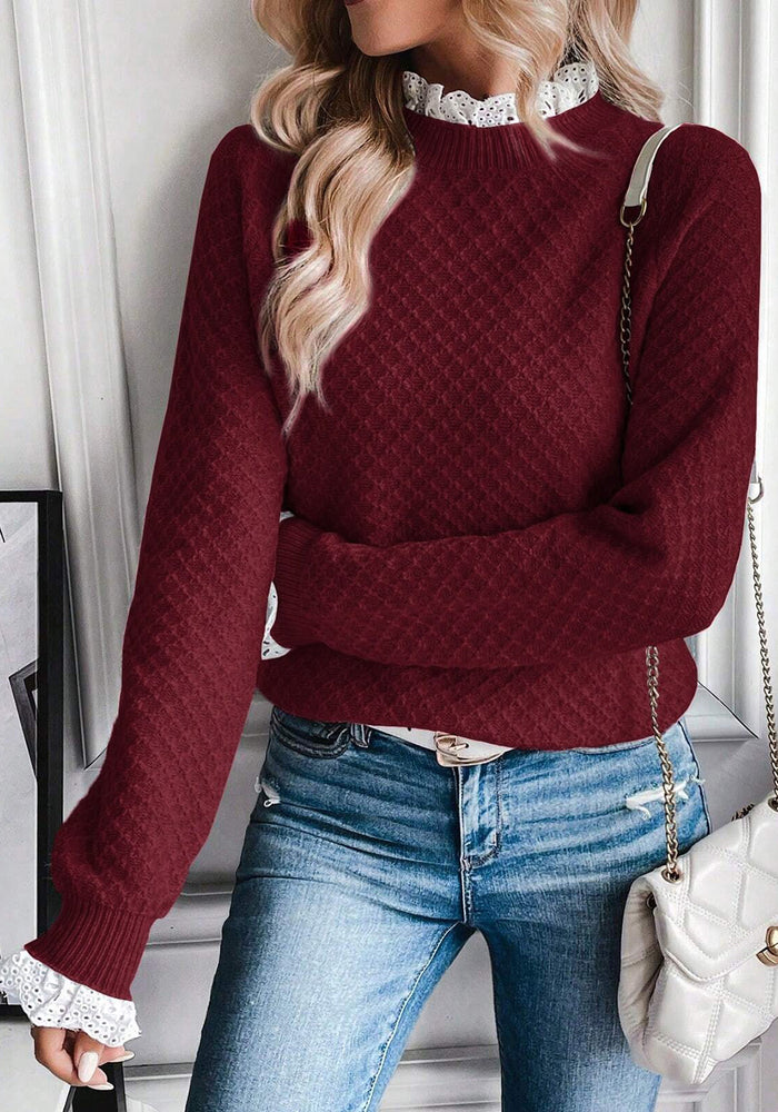 Burgundy Contrast Lace Frilled Trim Raglan Sleeve Sweater
