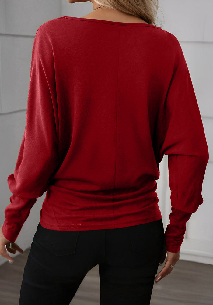Red Dahlia Solid Color Extended Cuffs Long Sleeve Top