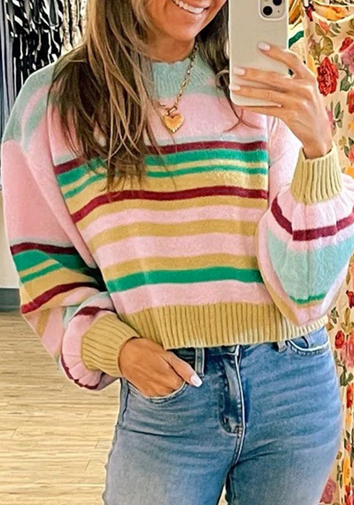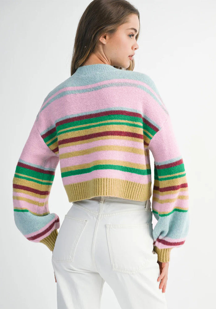 Multicolour Striped Knit Ribbed Trim Boxy Fit Cropped Sweater