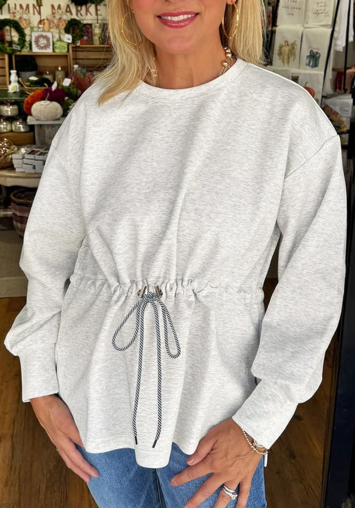 Light Grey Drawstring Waist Tunic Solid Sweatshirt