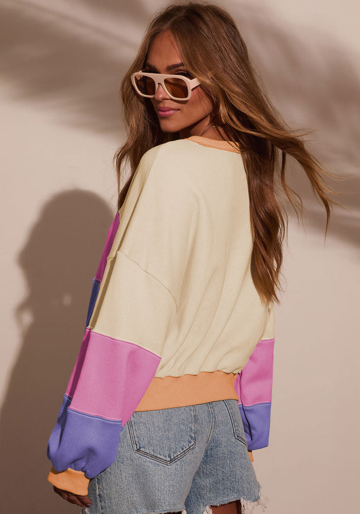 Phalaenopsis Color Block Patchwork Drop Shoulder Cropped Sweatshirt