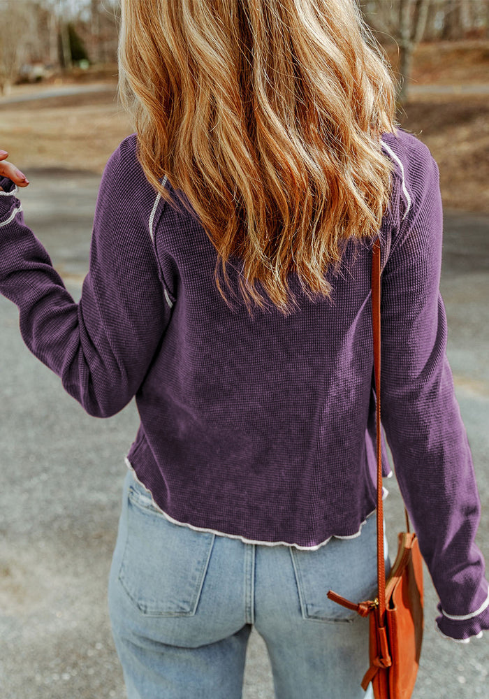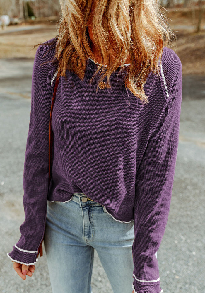 Tillandsia Purple Textured Round Neck Long Sleeve Top