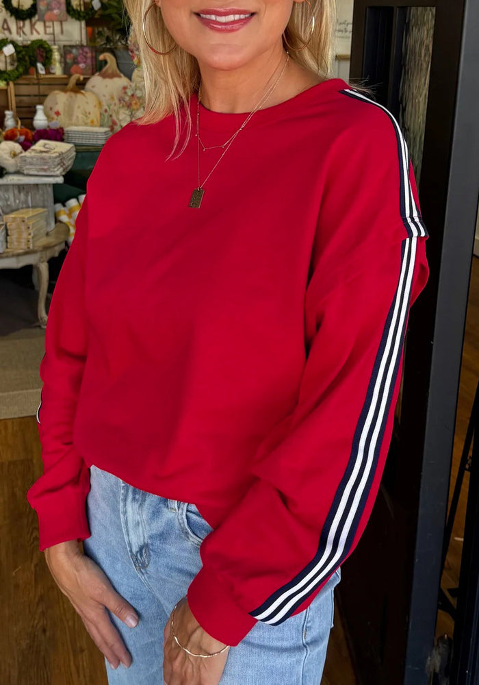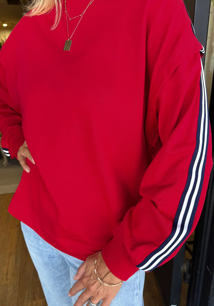 Fiery Red Contrast Striped Detail Varsity Sweatshirt