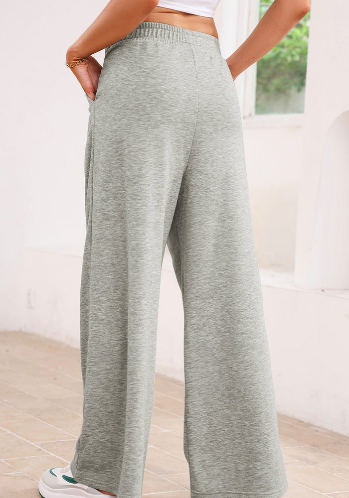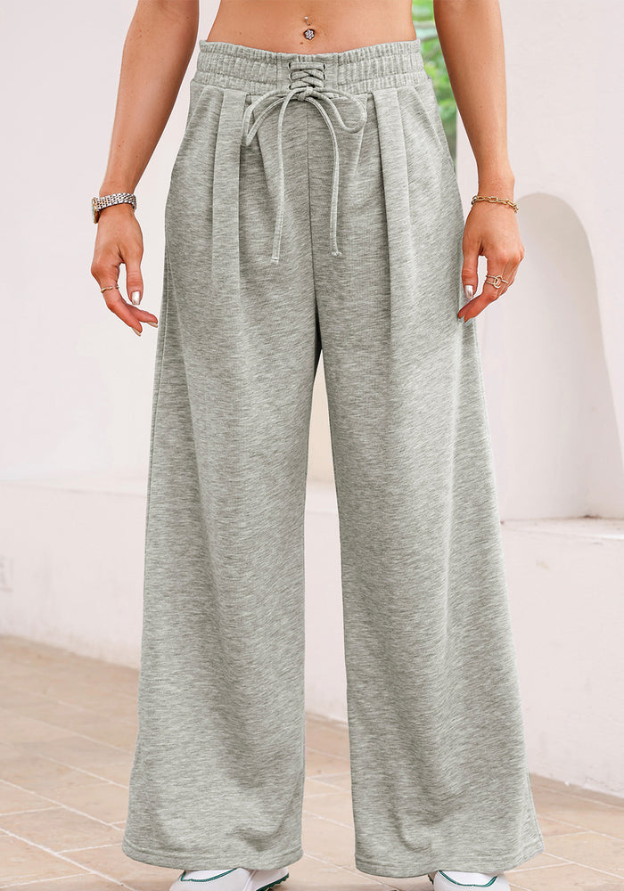 Gray Tied Elastic High Waist Pleated Detail Solid Sweatpants