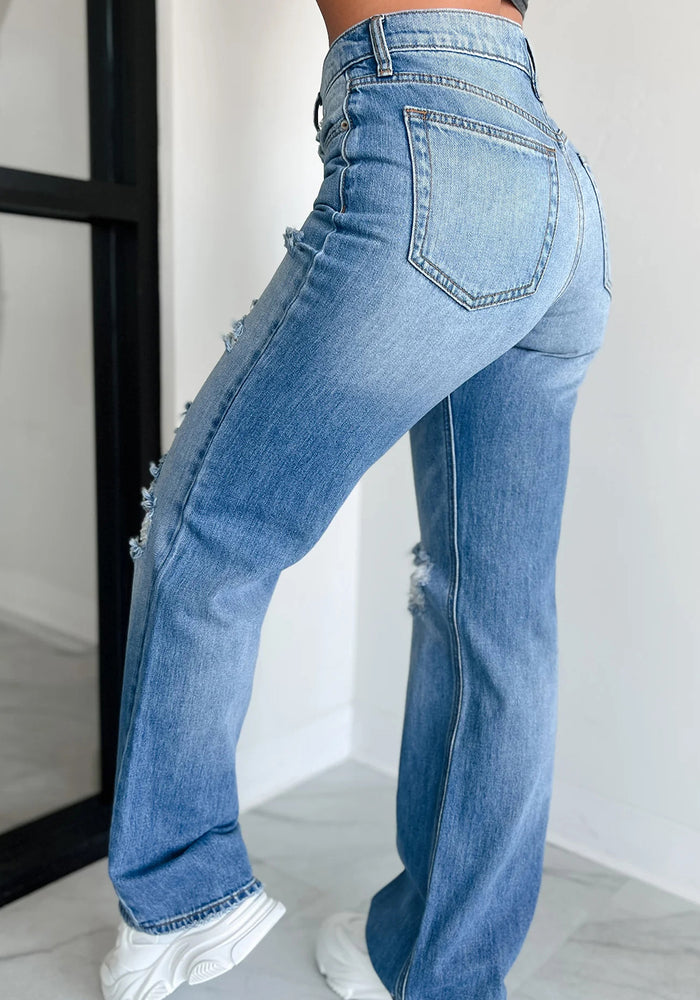 Myosotis Mid Rise Distressed Sneak Peek Straight Leg Jeans