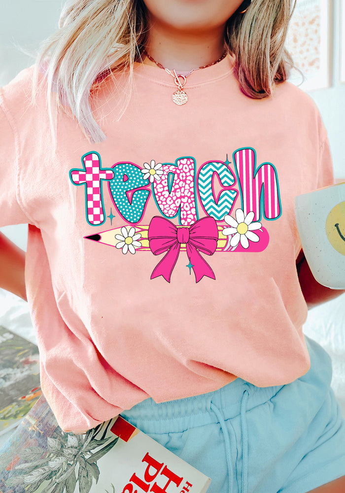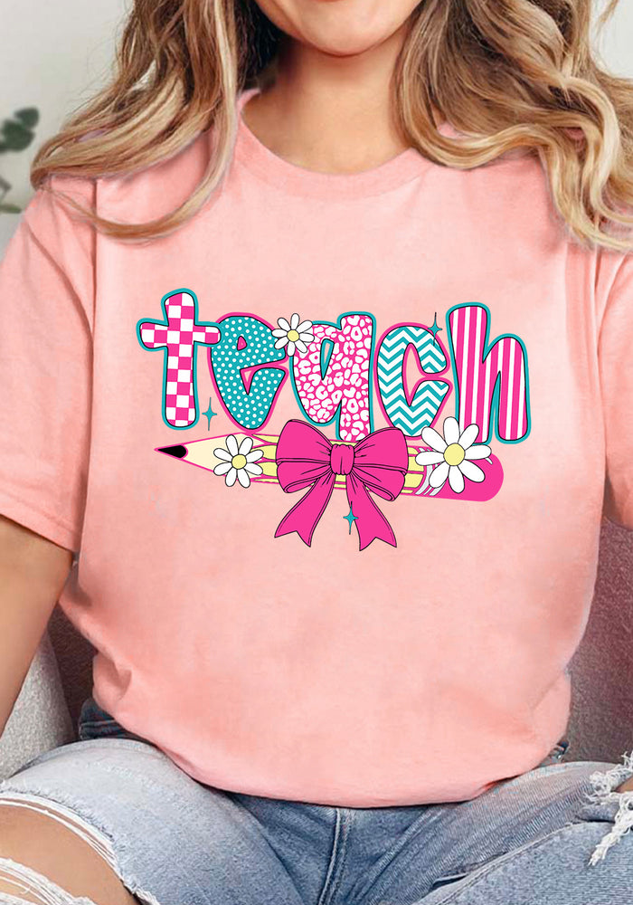 Pink Preppy Retro Checkered Coquette Teach Graphic T-Shirt
