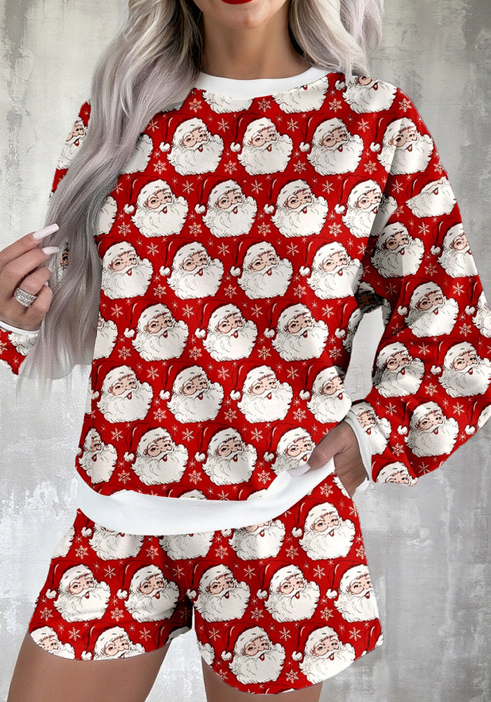 Red Ho Ho Ho Christmas Fashion Print 2pcs Lounge Short Set