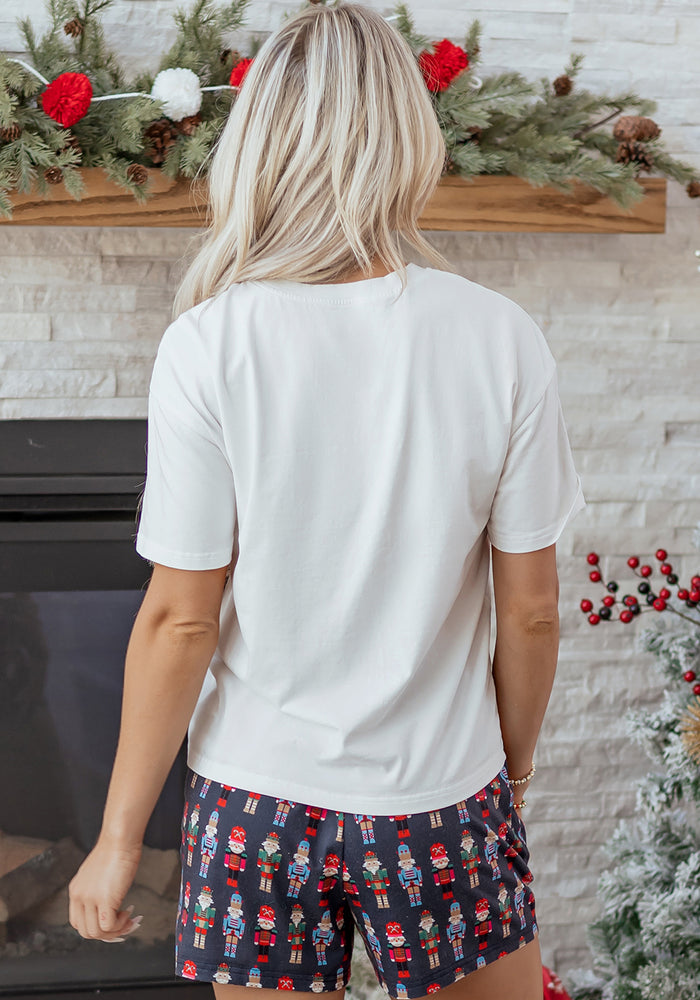 Pink Mama Claus Plaid Letter Tee Nutcracker Shorts 2pcs Lounge Set