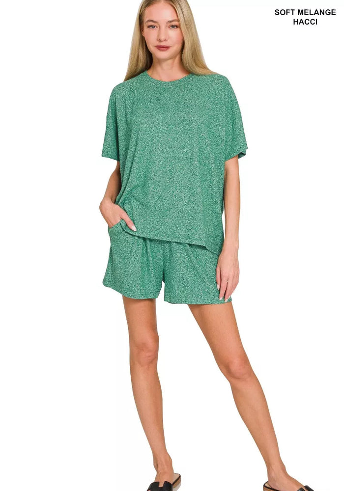 Zenana Soft Melange Short Sleeve Tee and Shorts Set