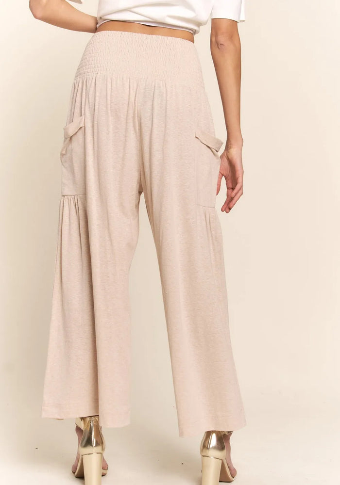 J.NNA Smocked Waist Boho Wide Leg Pants with Pockets