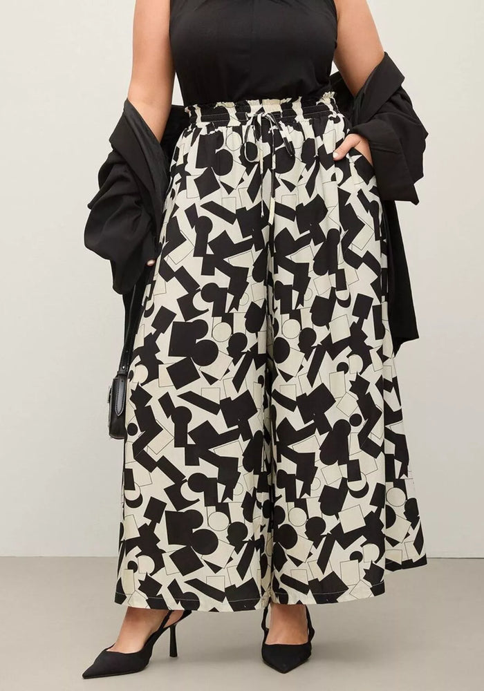 Black Leopard Patched Pocket Long Sleeve Top Plus Size Pants Set