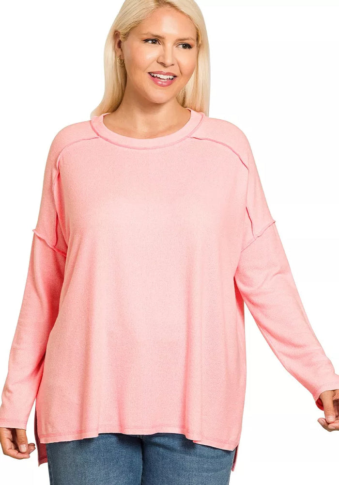 Zenana Full Size Melange Hacci Exposed Seam Hi-low Tee Plus Size