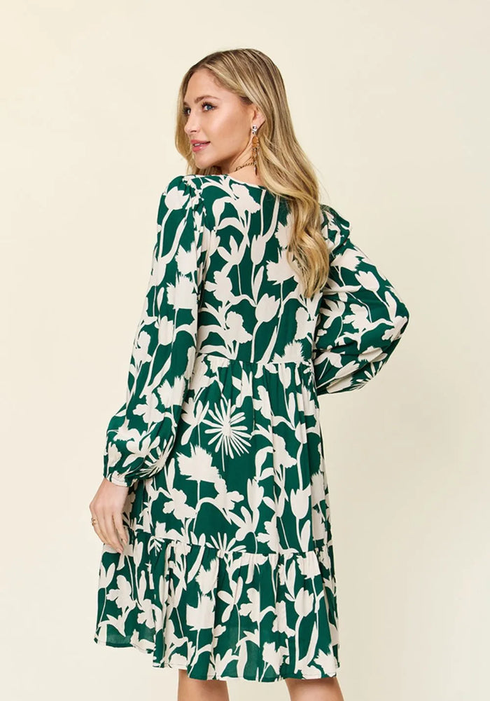 Double Take Full Size Printed Ruffle Hem Dress with Pocket