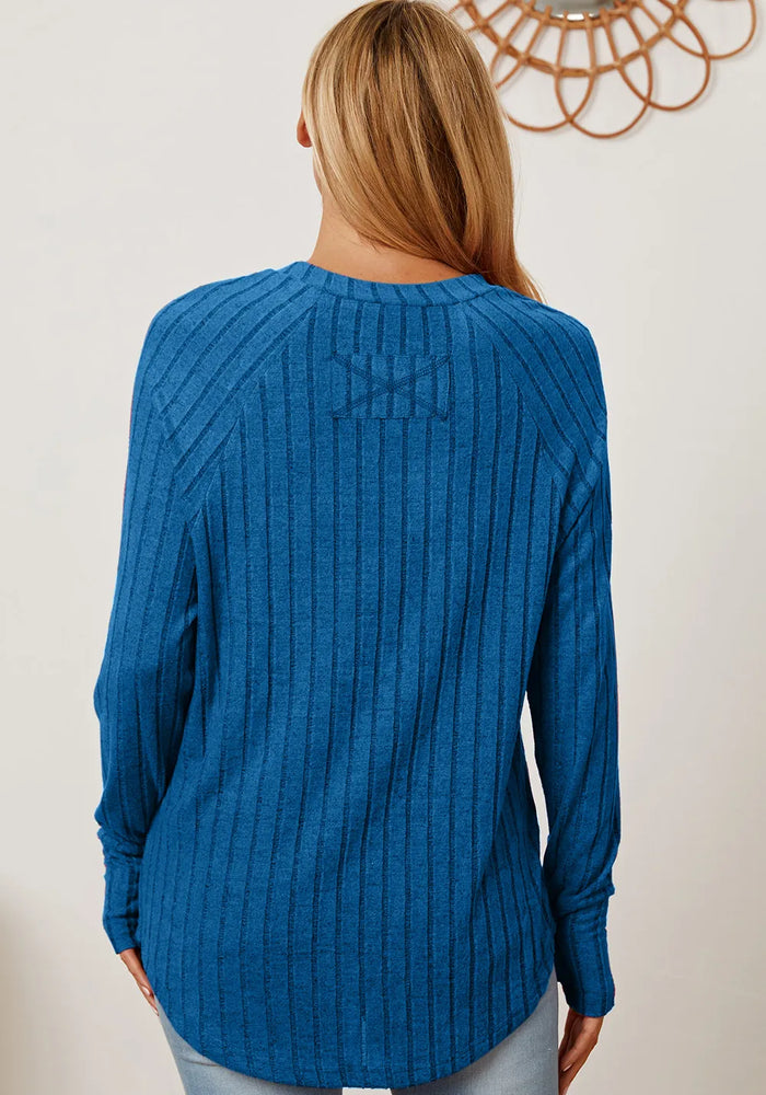 Basic Bae Full Size Ribbed Round Neck Long Sleeve Knit Top