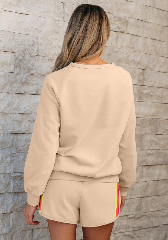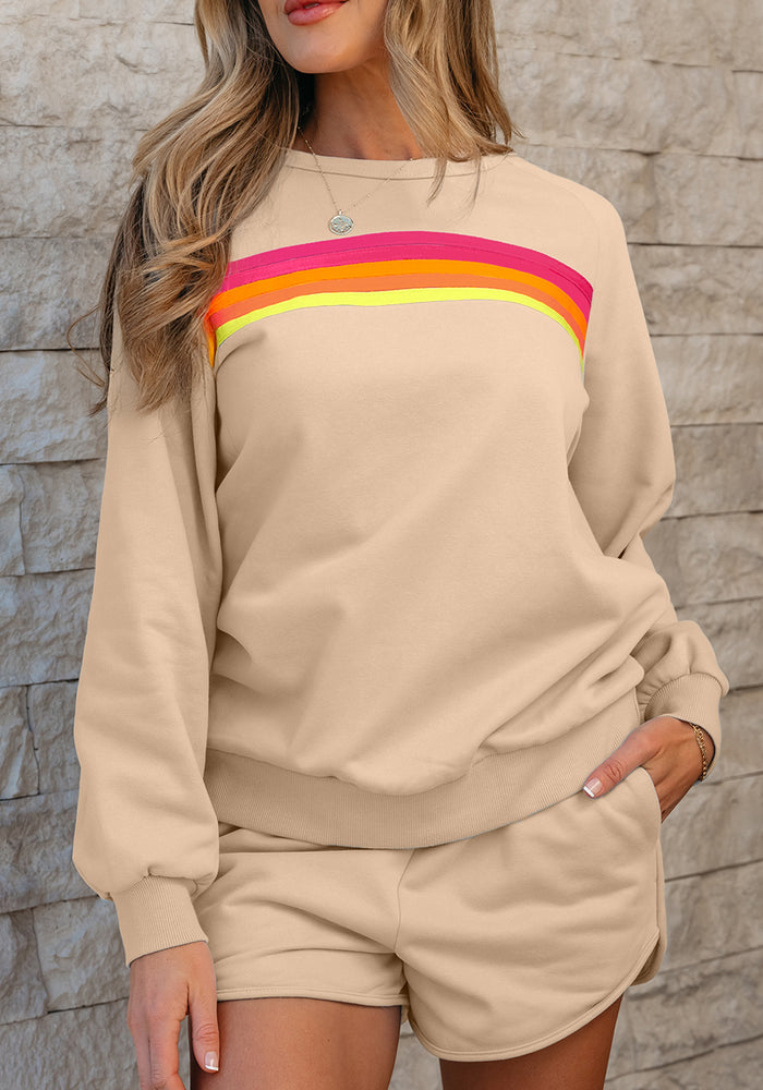 Apricot Striped Accent Pullover and Shorts Two Piece Casual Set