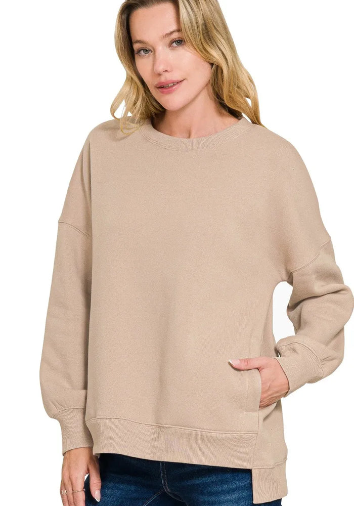 Zenana Full Size Fleece Hi-low Boyfriend Sweatshirts with Pockets Plus Size