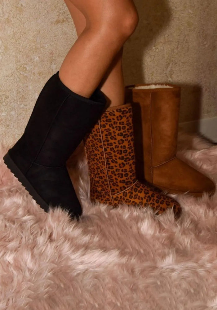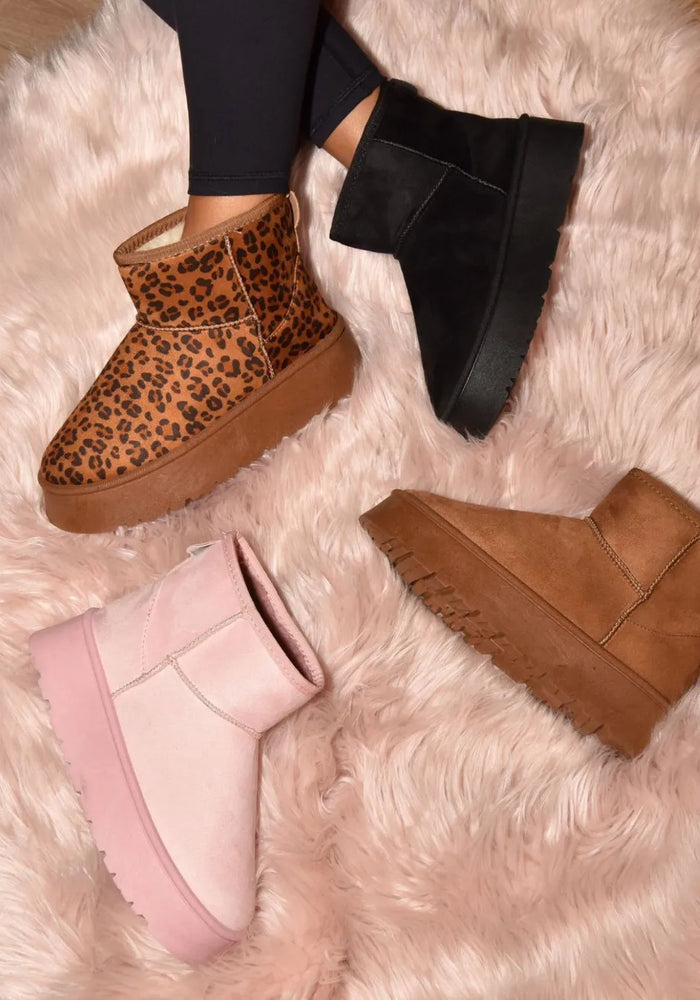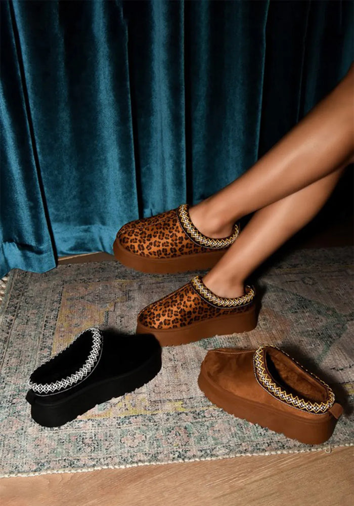 WILD DIVA Thermal Furry Leopard Platform Booties
