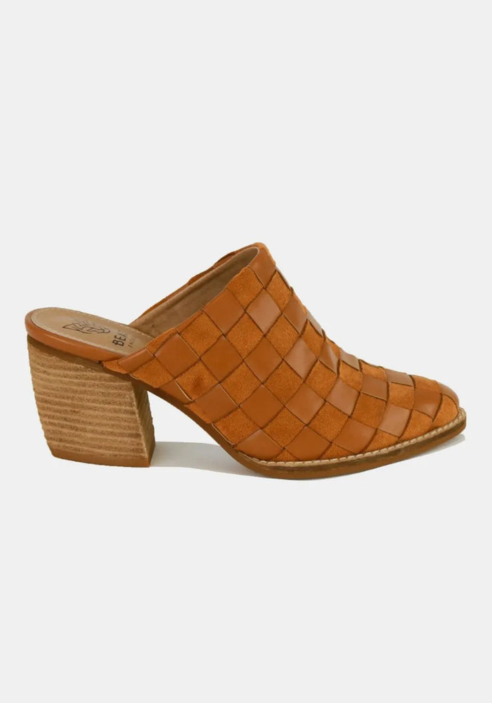 Beast Fashion Woven Checkerboard Block Heel Mule Shoes