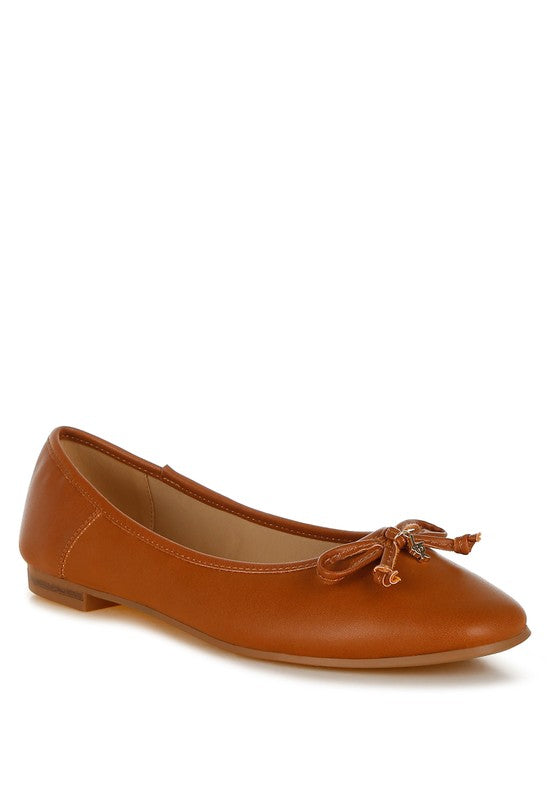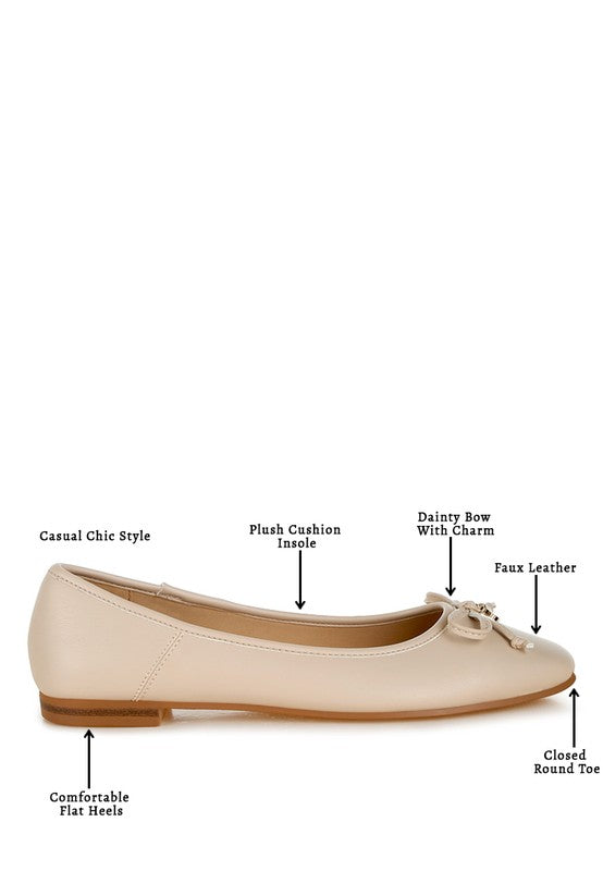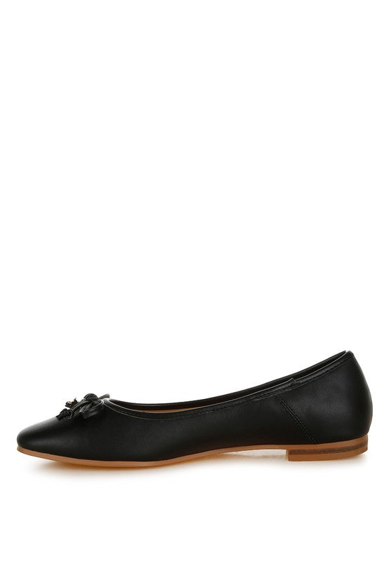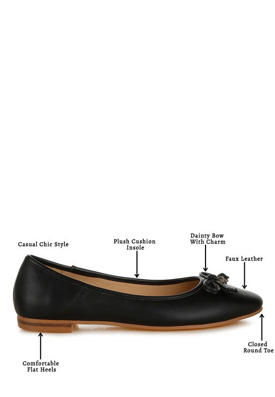 The adorable casual bow-embellished ballerinas feature a premium faux leather exterior. They are supremely easy to slide into on days when you want a relaxed, laid-back vibe. Pair the ballet flats, featuring comfortable cushioned insoles, with shorts, sundresses, and more for a duck soup style.