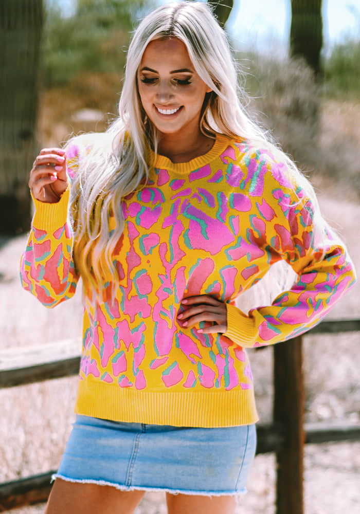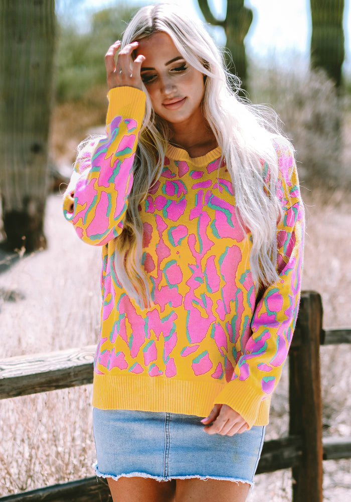 Vitality Orange Abstract Print Ribbed Trim Baggy Sweater